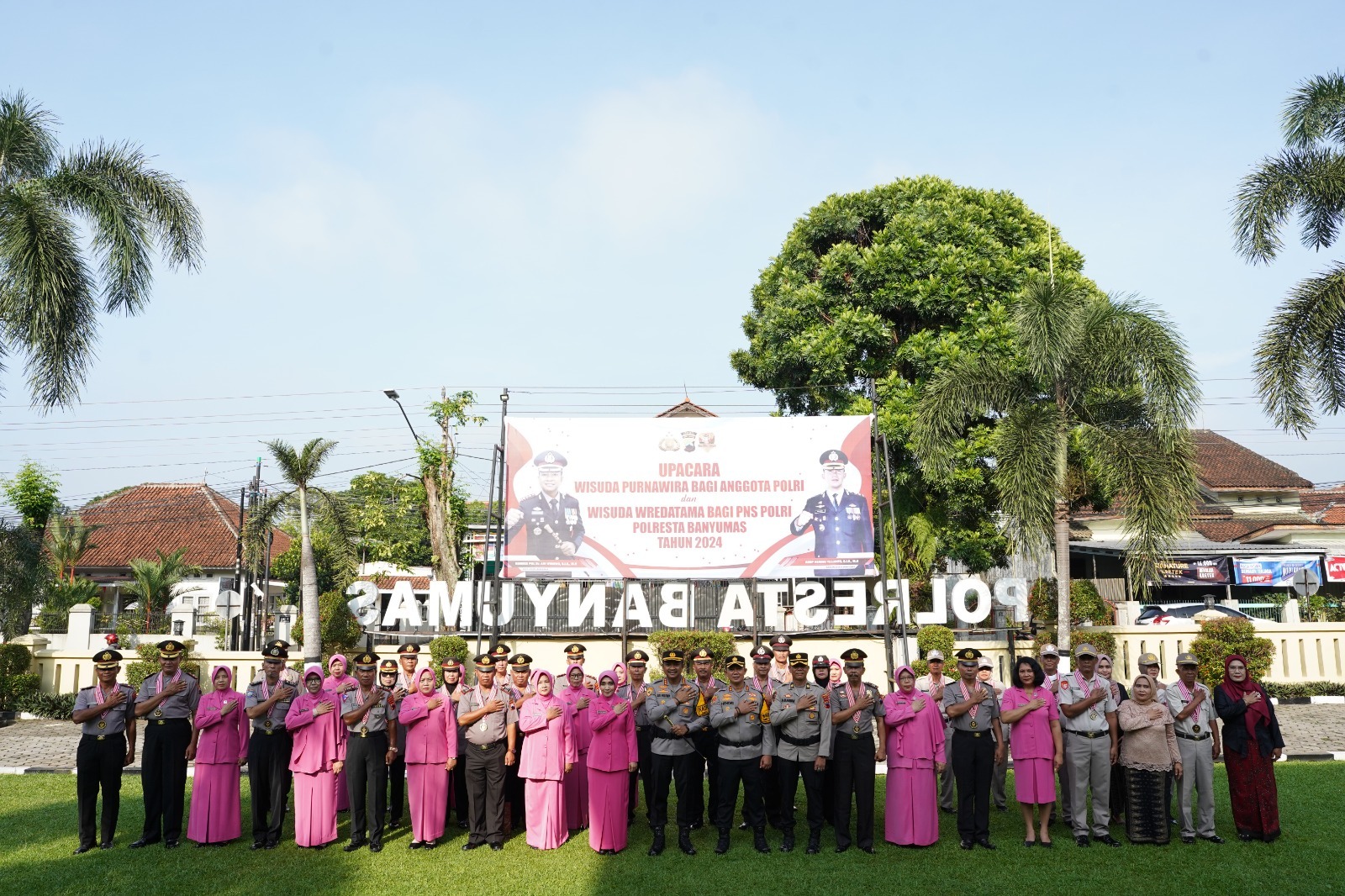 Buserpantura.id Banyumas - Kapolresta Banyumas Kombes Pol Dr. Ari Wibowo, S.I.K., M.H., memimpin Upacara Wisuda Purnawira Anggota Polri dan Wisuda Wredatama PNS Polri Polresta Banyumas, Rabu (20/11/24).